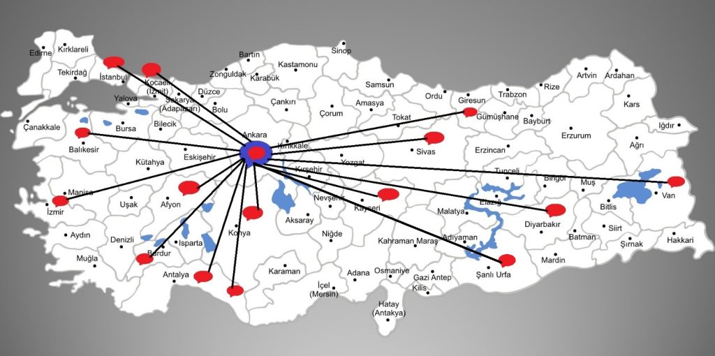 Türkiye’nin 7 bölgesinde yer alan 16 bayimiz ile size en yakın noktada hizmet sunuyoruz. Her bölgede, ihtiyaçlarınıza hızlı ve güvenilir şekilde yanıt verecek uzman bayilerimizle iletişime geçebilirsiniz.